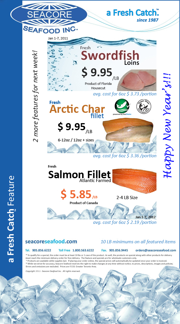 Canadian Atlantic Salmon + Arctic Char Filelts + Swordfish Loins + Fresh Fish and Seafood