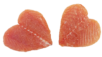 Fresh, Farmed Heart Shaped Salmon Portions Frozen & Wild Squid Rings & Tentacles in 9oz Serving Pack