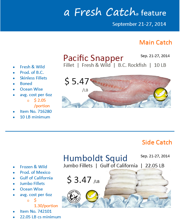 Pacific Snapper, Rockfish, Snapper Fillets, Squid, Humboldt Squid, Ocean Wise Squid