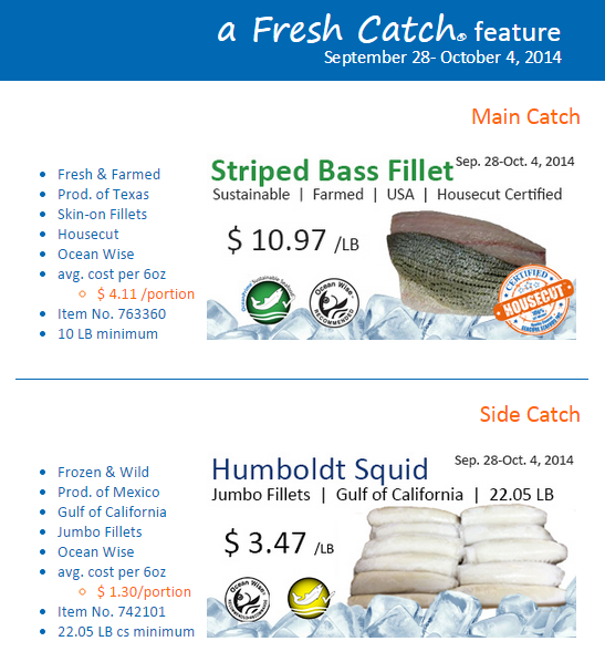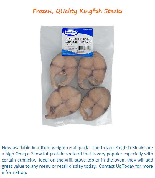 Fresh Striped Bass Fillets, IQF Humbolt squid, Premium IVP Kingifsh Steaks
