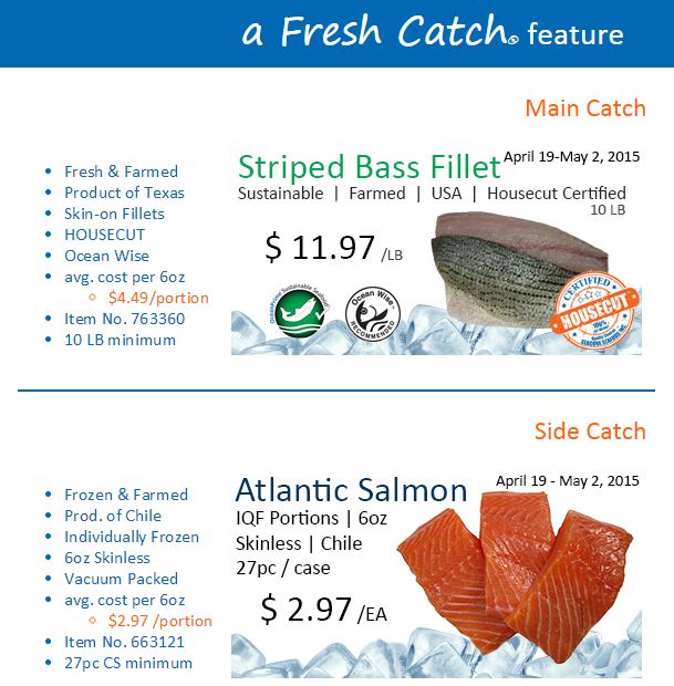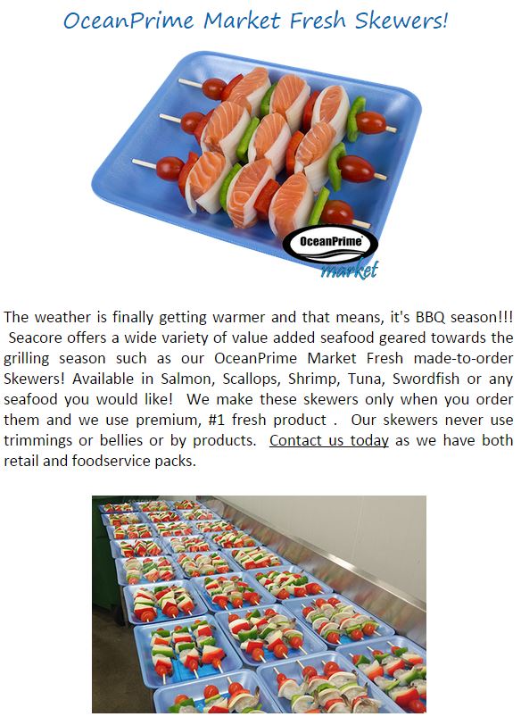 Striped Bass, Hybrid Bass, Bass Fillets, Salmon, Atlantic Salmon, Salmon Portions, Seafood Skewers, Salmon, Skewers, Shrimp Skewers, Scallop Skewers, Seafood Kabobs
