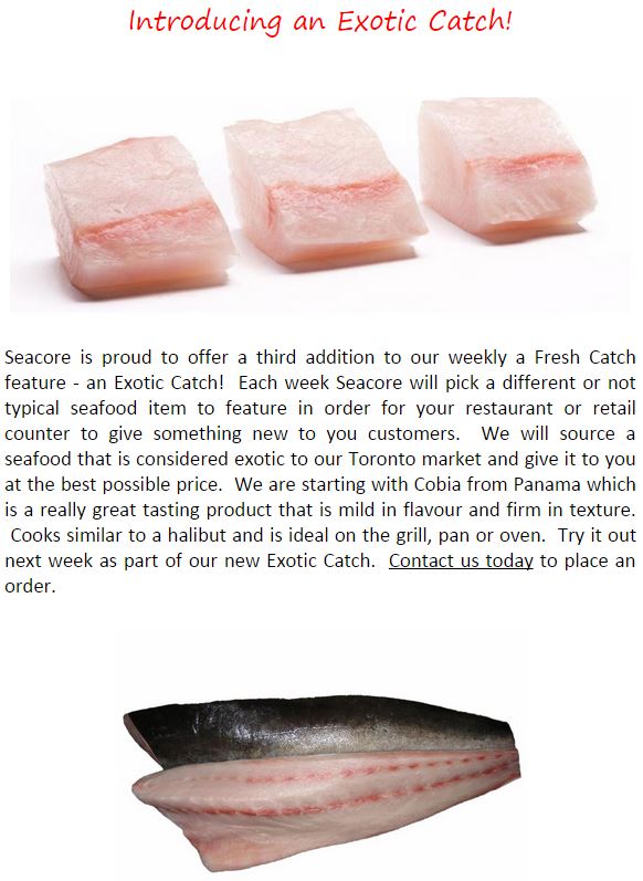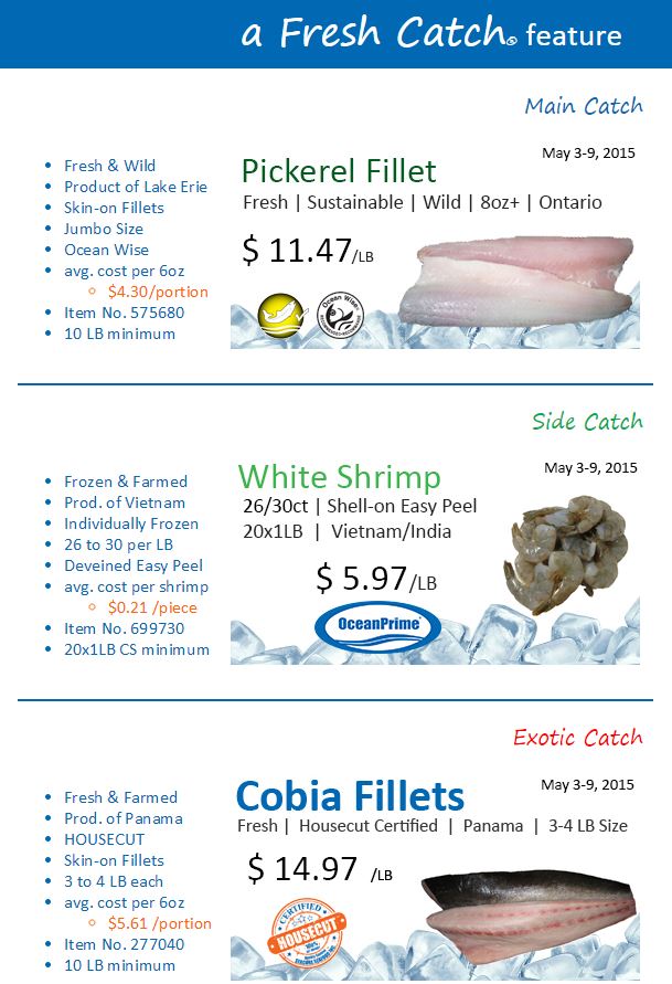 Cobia, Cobia Fillets, Pickerel Fillets, Walleye, White Shrimp, Easy Peel Shrimp