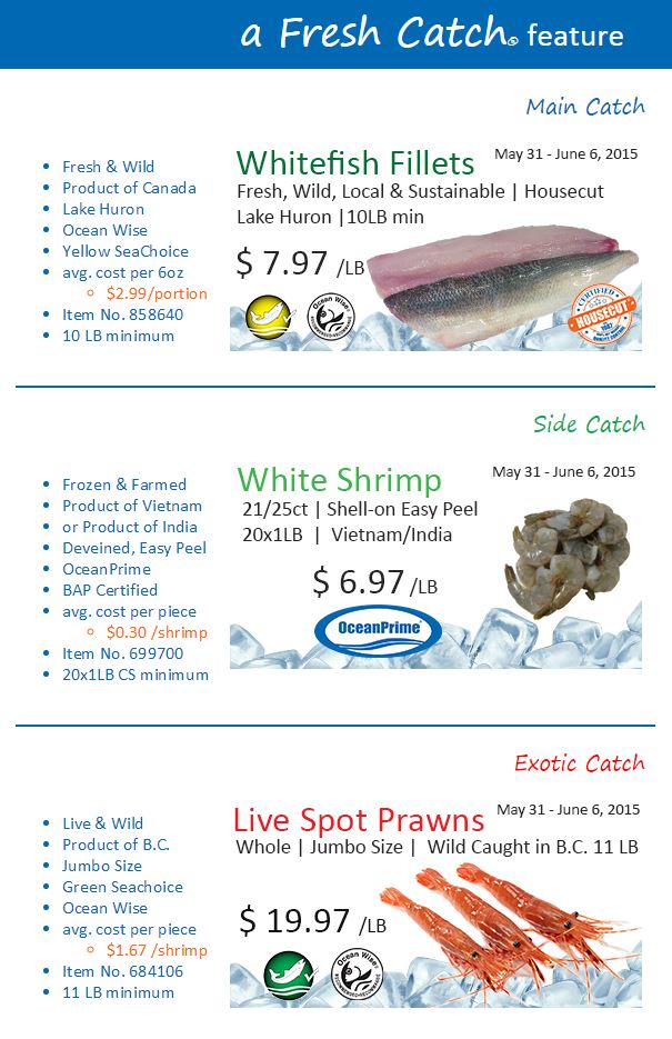 Fresh Whitefish Fillets, Lake Whitefish, White Shrimp, Pacific White Shrimp, Live Spot Prawns, Spot Prawns, BC Prawns