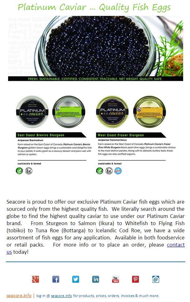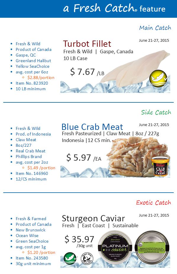 Fresh Turbot Fillets, Fresh Blue Crab meat, Sturgeon Caviar, East Coast Caviar