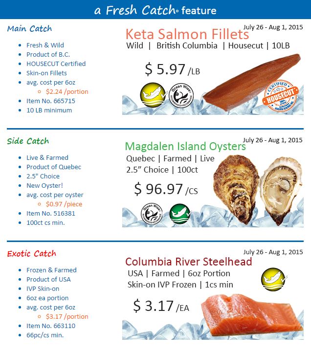 Wild Keta Salmon Fillets, Wild Salmon, Magdalen Island Oysters, Ile de Magdelaine, Columbia River Steelhead