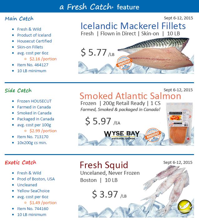 Fresh Mackerel, Mackerel Fillets, Icelandic Mackerel, Smoked Salmon, Atlantic Smoked Salmon, Canadian Smoked Salmon, Fresh Squid, Boston Squid, Uncleaned Squid, Fresh Calamari