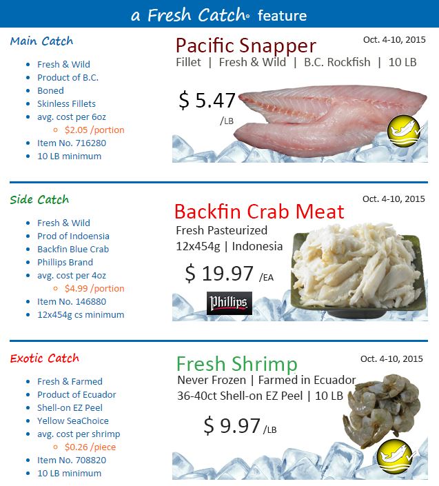 Wild Snapper, Pacific Snapper, Rockfish Backfin Crab Meat, Crab Meat, Phillips Crab Meat, Fresh Shrimp, White Shrimp
