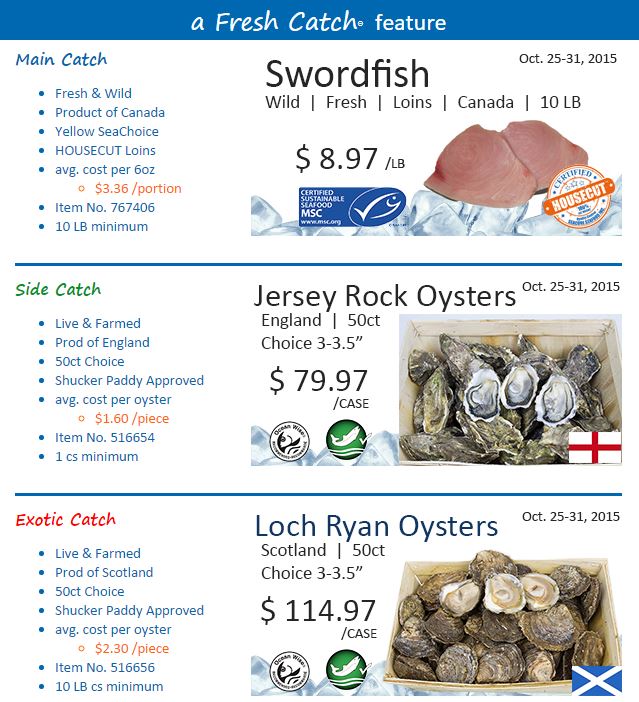 Fresh Swordfish Loins, MSC Swordfish Loins, Hersey Rock Oysters, Loch Ryan Oysters, English Oysters, Scottish Oysters, Ocean Wise, Ocean Wise Chowder Chowdown