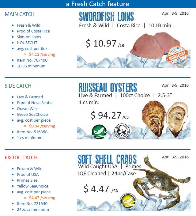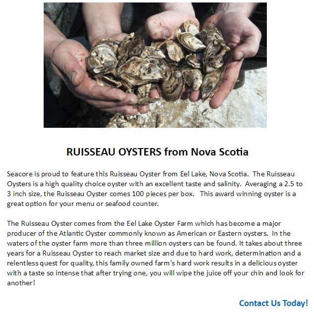 Swordfish Loins, Swordfish, Ruisseau Oysters, Eel Lake oysters
