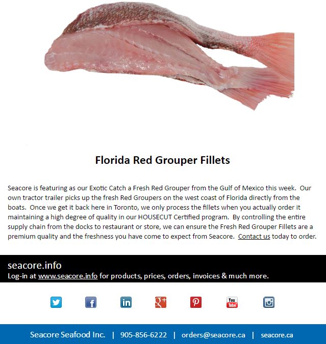 Icelandic Cod Fillets, Cod Fillets, Shemogue Oysters, NB Oysters, Red Grouper, Red Grouper Fillets