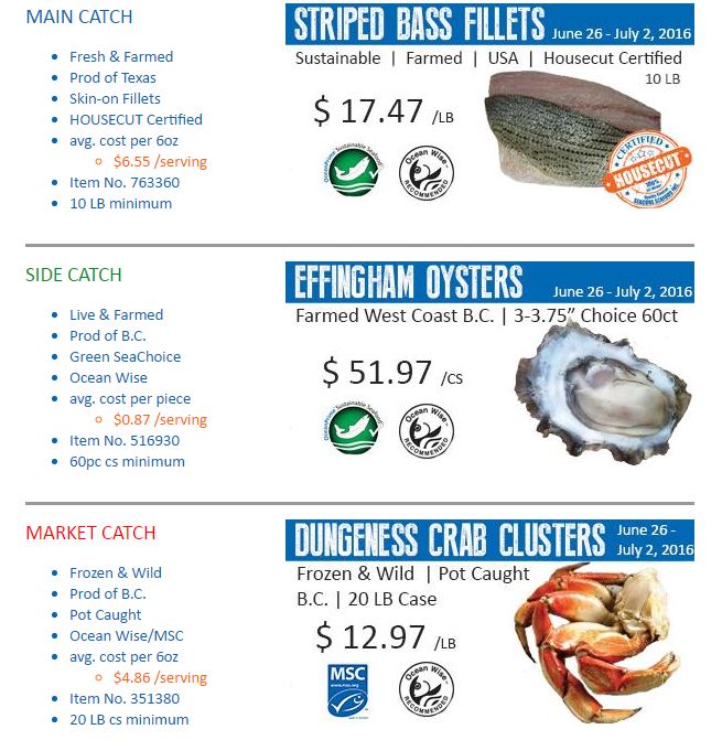 Fresh Striped Bass, Striped Bass Fillets, Effingham Oysters, West Coast Oysters, Dungeness Crab Clusters, Dungeness Crab