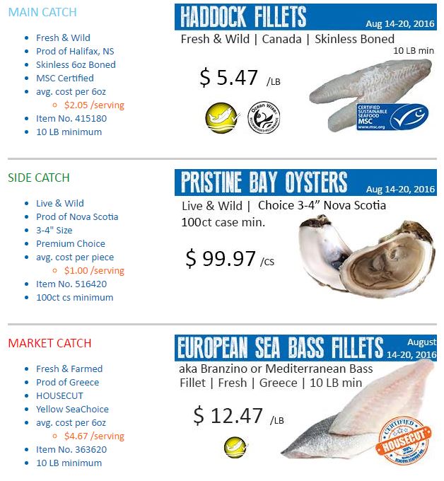 Haddock Fillets, Pristine Bay Oysters, Nova Scotia Oysters, European Sea Bass Filllets, Branzino, Mediterranean Sea Bass