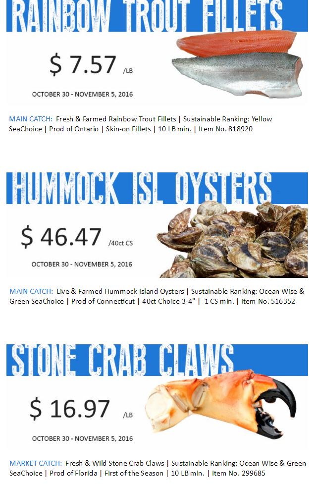 Rainbow Trout Fillets, Hummock Island Oysters, Stone Crab Claws