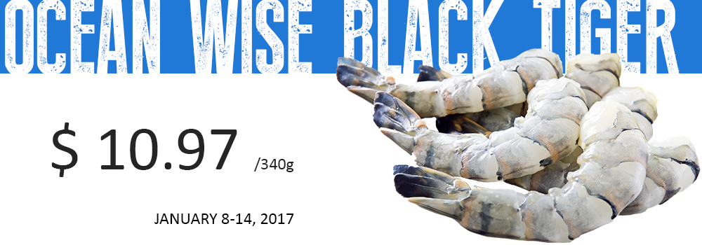 SIDE CATCH: Frozen & Farmed Black Tiger Shrimp | Sustainable Ranking: Ocean Wise | Prod of Vietnam | 13-15ct Peeled & Deveined Tail-on IQF | 20x340g case min. | Item No. 705210