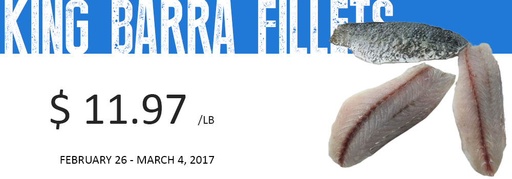 Fresh & Farmed King Barra Barramundi Fillets | Sustainable Ranking: BAP Certified | Prod of Saudia Arabia | Skin-on Fillets HOUSECUT | 10 LB min. | Item No. 120081