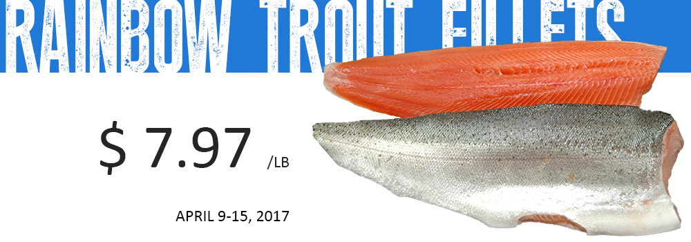 Fresh & Farmed Rainbow Trout Fillets | Sustainable Ranking: Yellow Choice | Prod of Ontario | PBO Skin-on | 10 LB case min. | Item No. 818920