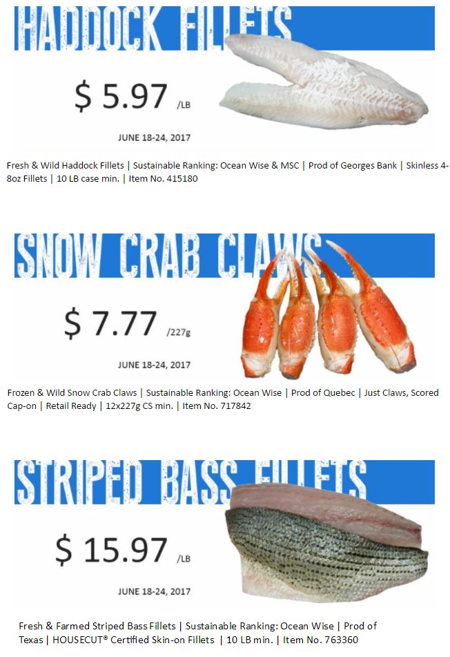 Seacore will be featuring the mild tasting Striped Bass. Farm raised in Texas on an inland, controlled farm, the premium Striped Bass is a true delicacy and centre of the plate specialty. Also known as Sunshine Bass, Stripers or Hybrid Bass, it is a cross between a marine striped bass and a freshwater white bass resulting in the best characteristics of both species. The silver, greenish-white skin with it's distinctive black horizontal stripes makes for a mild, delicate taste that is slightly sweet. The meat is flaky white and moderately firm. Available all year long, the Striped Bass adds a great value to any menu or fish counter. Try it today!