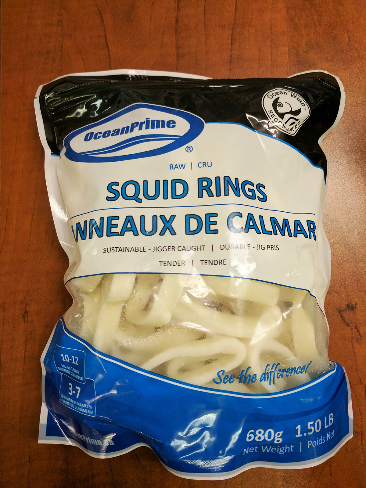 Seacore has a new & exciting item available this week on feature, our OceanPrime Jig Caught Squid Rings. Working with one of our exclusive squid processors, we were able to secure some of this very popular squid that is usually kept overseas. A seafood delicacy in high end hotels and restaurants in Japan and South Korea, this Jig Caught squid is a wild caught calamari from the Sea of Japan. Part of the Winter Cohort, North America rarely sees this squid as most of its consumption is sold and used in Japan. The squid is very tender and has an excellent taste. The best part of this squid is that it is only 1 of 2 species of squid that is recommended by Ocean Wise for it's sustainability. The other squid is the Giant or Humboldt Squid which can not compare to the quality of this Jig Caught one. Available in IQF Rings or Tubes and conveniently packed in a 12 x 680g Retail Ready bag, this Ocean Wise Recommended Squid from OceanPrime adds a great value to any menu or retail display.