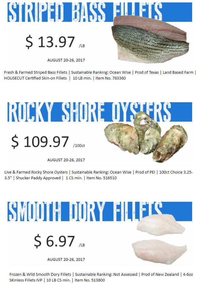 Seacore is featuring a truly nice tasting fish in the Striped Bass this week. Farmed inland in Texas, the Striped Bass is a hybrid of a Mediterranean sea bass and a freshwater white bass. Also known as Sunshine Bass or Stripes, the Striped Bass is a very mild, pleasant sweet tasting, white flaky meat that will be a true centre of the plate option. It arrives at Seacore in the whole form and our expert cutters inspect it and fillet it to order making it part of our HOUSECUT® Certified program. If you haven't yet tried it, make sure to put it on your menu this week or in your fresh fish counter!