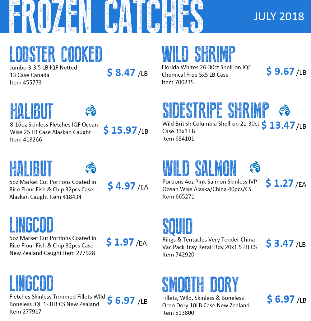 Seacore is featuring two excellent products this month with our Frozen Catches Specials. The Halibut and Lingcod are premium portions that are bias cut or market cut and lightly coated in an all natural Rice Flour. In fact 99% of the weight is the actual fish. The light coating, referred to as dusting, allows for both portions to be battered in a premium way. The result is that your fish batter will not fall off from the fish and instead create a really nice fish & chip option. If you haven't tried it for your fish & chips, contact us today for some samples and we will be more than glad to send some out to your business. Try it Today!