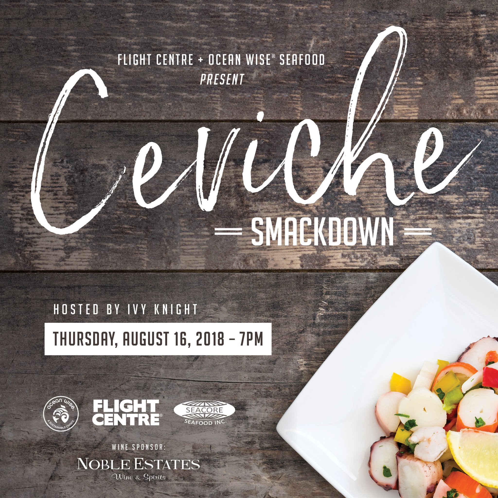 Ocean Wise will he holding their annual Ceviche Smackdown event on Thursday, August 16th. This year's event will take place at a new venue, the Flight Centre and hosted by Ivy Knight. Seacore is the main seafood sponsor once again and we are proud to help out a great cause. It is always a fun and amazing event so grab your tickets now before they run out! All the proceeds go to supporting sustainable seafood!